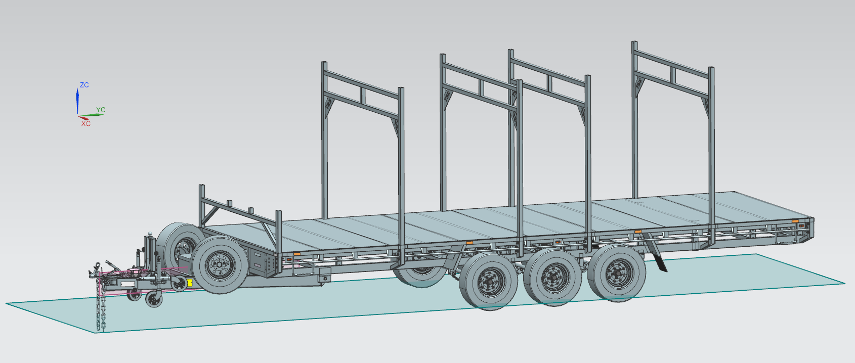 Full-length flat deck platform for oversized loads and flexible cargo positioning
